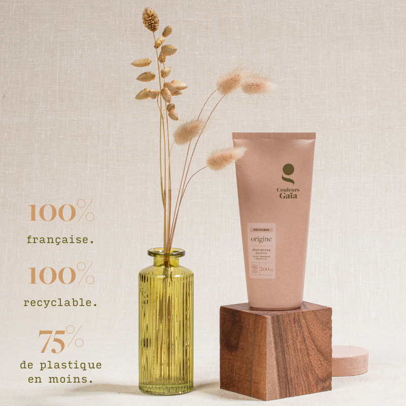 Ce shampoing bio professionnel est disponible à la recharge, chez votre coiffeur Couleurs Gaïa.