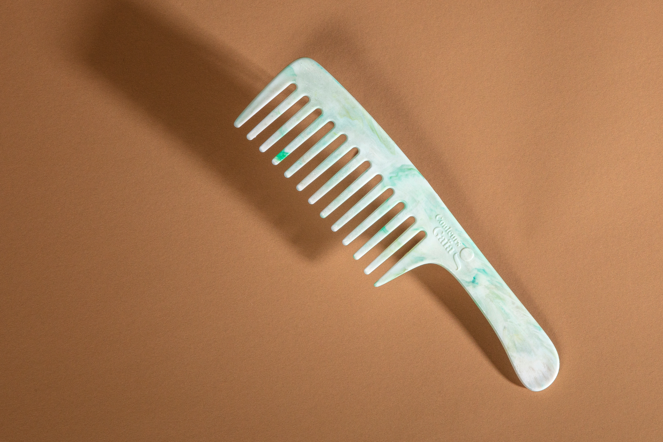 Accessoire fabriqué en Bretagne et composé à 100% de déchets plastiques, le peigne Couleurs Gaïa démêle en douceur tous types de cheveux.