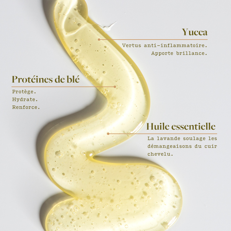 Sans sulfate • Sans silicone • Formule biodégradable • Fabriqué en France