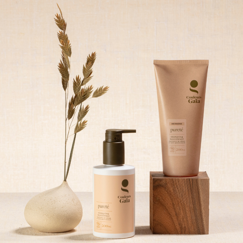 Anti-pelliculaire, diminue l'excès de sébum et réduit les irritations ou démangeaisons du cuir chevelu.Shampoing et son éco-recharge Pureté